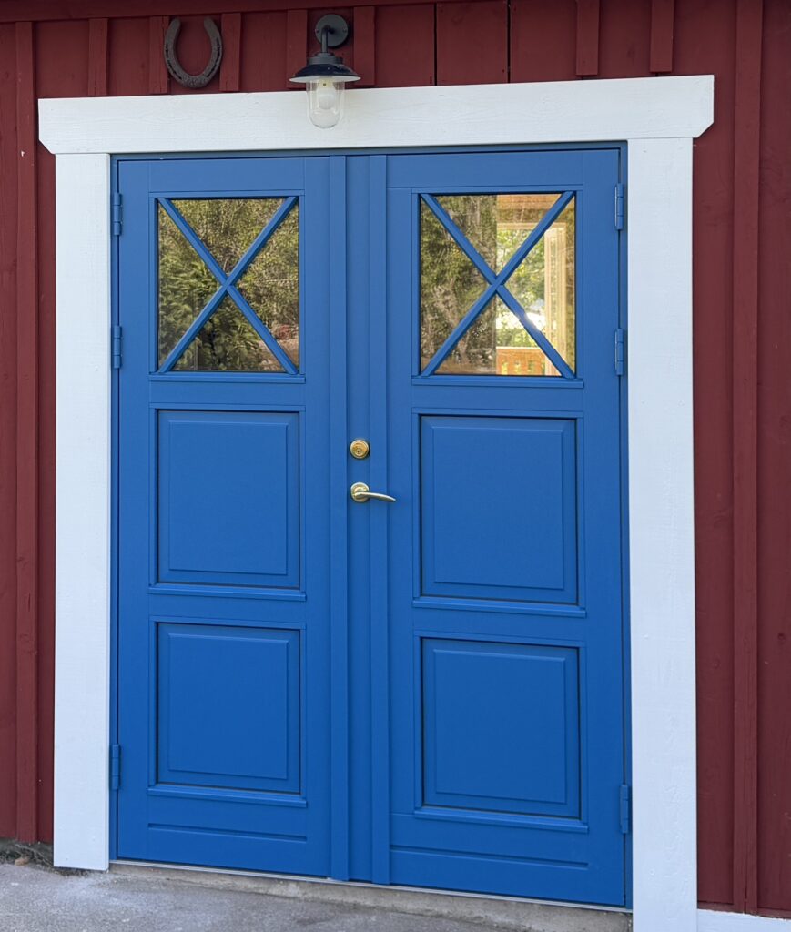 - Dörrarna målas i en valfri kulör (RAL/ standard NCS) mot tillägg kan vi måla olika nyans ute/inne eller med lasyr.
